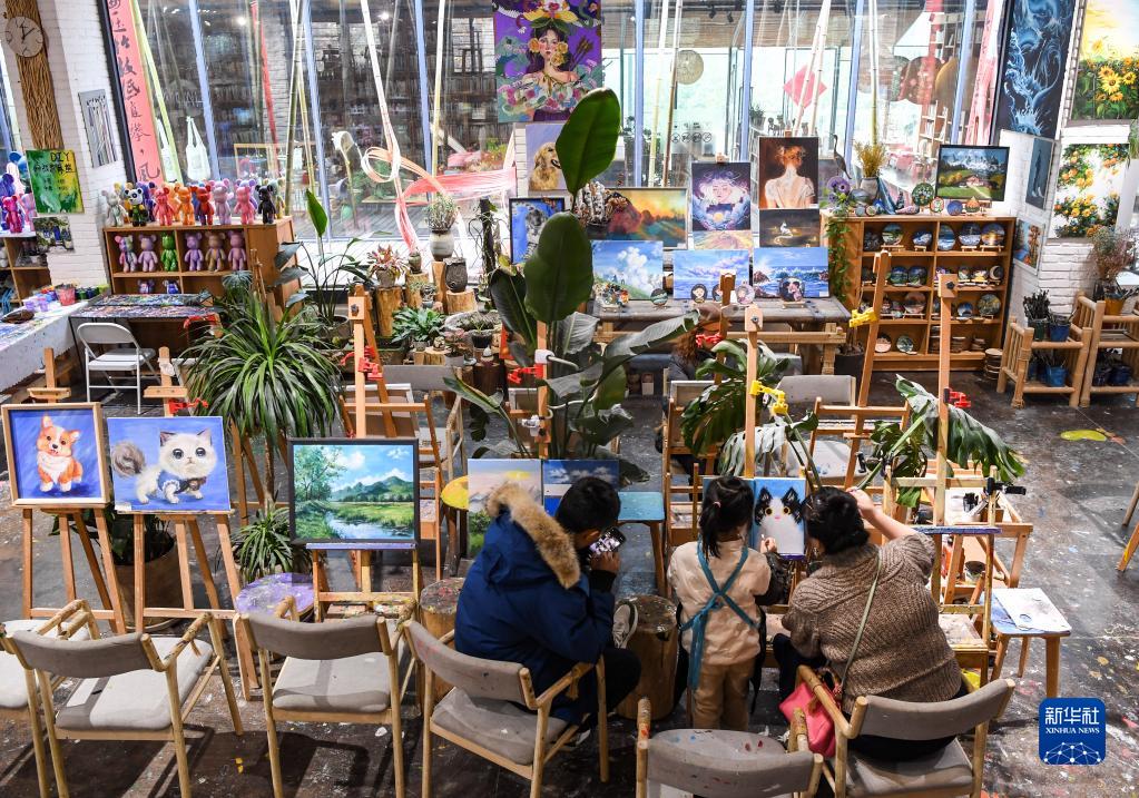 1月27日,游客在重慶北倉文創(chuàng )街區體驗繪畫(huà)。