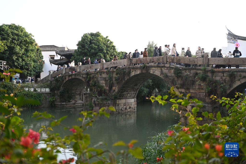1月27日,游客在福州上下杭歷史文化街區三通橋上參觀(guān)游玩。