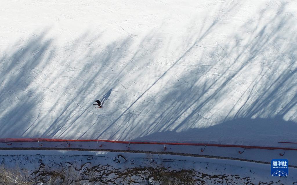 1月27日,游客在河北省灤平縣一處滑雪場(chǎng)滑雪(無(wú)人機照片)。