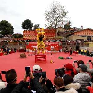 1月27日,人們在肇慶市石牌里文創(chuàng )街區廣場(chǎng)觀(guān)看醒獅爭霸賽。