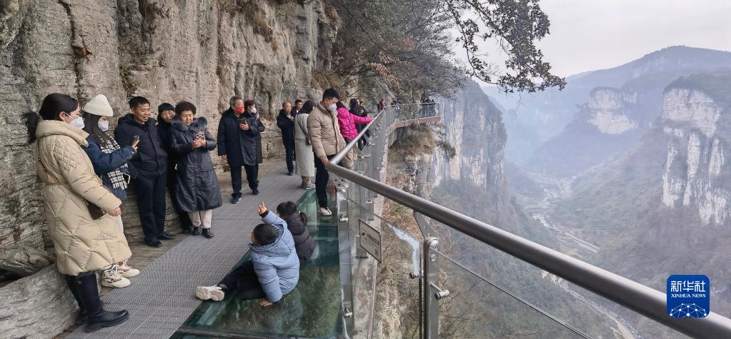 1月25日,游客在湖南省湘西土家族苗族自治州吉首市矮寨奇觀(guān)景區棧道上游覽。