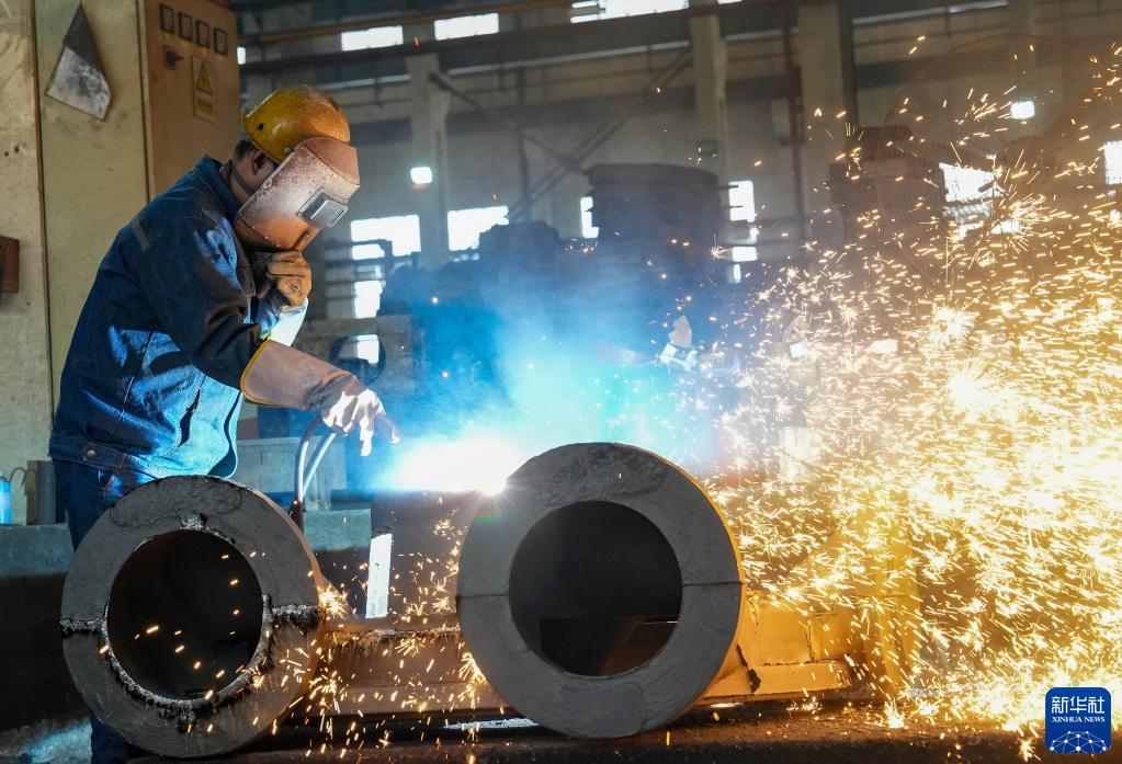 1月28日,工人在貴州省綏陽(yáng)縣經(jīng)濟技術(shù)開(kāi)發(fā)區一家鑄鍛企業(yè)作業(yè)。