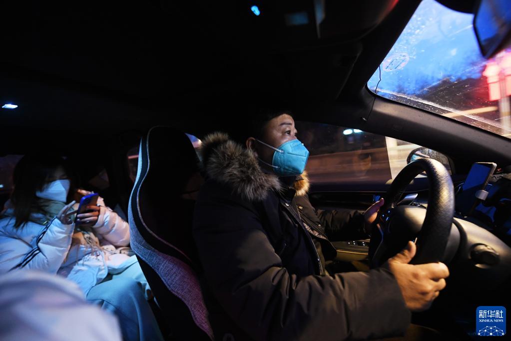 1月28日,滴滴網(wǎng)約車(chē)司機劉俊杰在送接到的第一單乘客前往目的地。