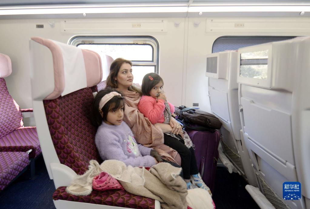 1月27日,在巴基斯坦伊斯蘭堡,乘客坐在綠線(xiàn)特快列車(chē)組的中國進(jìn)口鐵路客車(chē)內。