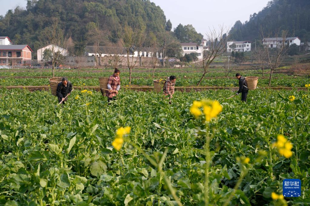 1月28日,村民在重慶市北碚區天府鎮代家村油菜種植基地除草。