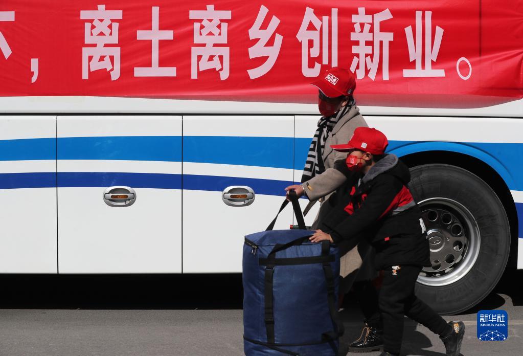1月29日,云南省昭通市昭陽(yáng)區外出務(wù)工人員準備乘坐當地政府組織的集中輸送外出務(wù)工人員專(zhuān)車(chē)返程。