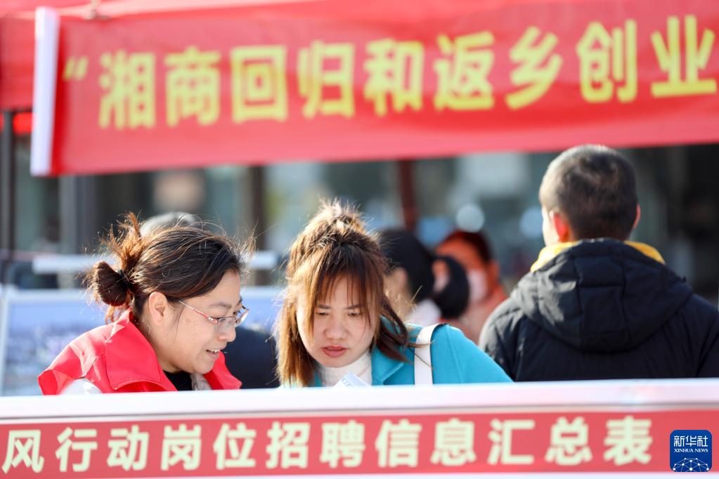 1月29日,求職者在湖南省永州市的新春招聘會(huì )上了解崗位信息。