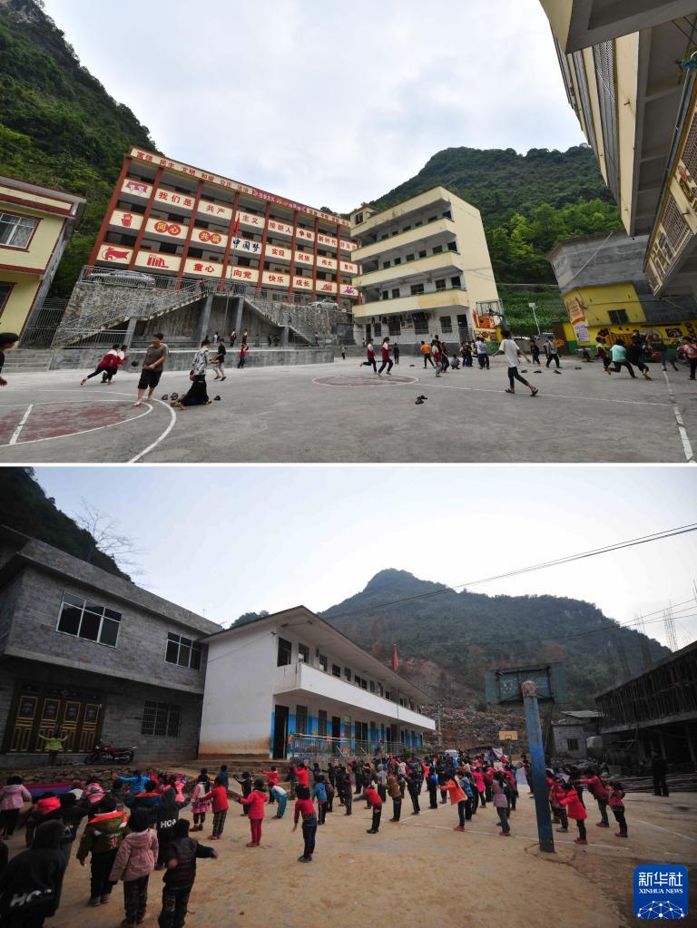 拼版照片:上圖為2022年5月19日拍攝的弄勇小學(xué);下圖為2013年12月19日拍攝的弄勇小學(xué)。