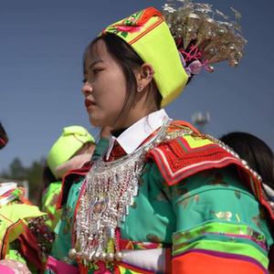當日是大年初八,在貴州省黔南布依族苗族自治州龍里縣龍山鎮中排村,各村寨的苗族群眾歡聚一堂,舉行一年一度的“跳月”活動(dòng),歡慶新春?!疤隆笔钱數孛缱迦罕娖砀oL(fēng)調雨順、歡慶新春的傳統民俗活動(dòng),也是苗族青年男女尋找意中人的大型社交活動(dòng)。