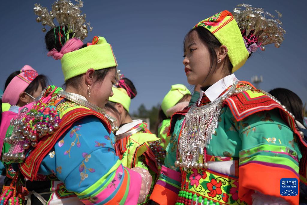 1月29日,苗族群眾在中排村參加“跳月”活動(dòng)。