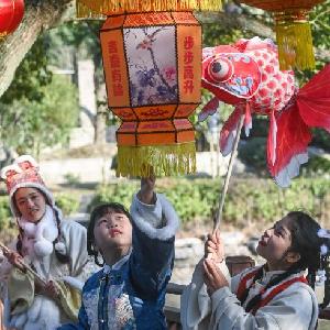 當日,有數百年歷史的浙江省嘉興市秀洲區新塍古鎮元宵民俗“鰲山燈會(huì )”正式亮燈,現場(chǎng)彩燈交相輝映,五彩斑斕。除了民俗燈展外,“鰲山燈會(huì )”現場(chǎng)還有蛋畫(huà)、銀杏畫(huà)、紙扎燈等非遺文化民俗展示。