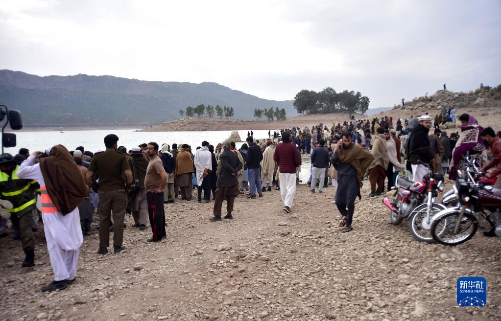 1月29日,人們聚集在巴基斯坦開(kāi)伯爾-普什圖省科哈特地區的船只傾覆事故現場(chǎng)。