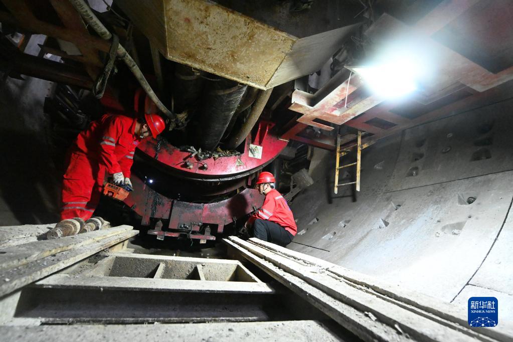 1月29日,施工人員在福州地鐵4號線(xiàn)金牛山站至洪塘站區間的下穿閩江底隧道內施工作業(yè)。