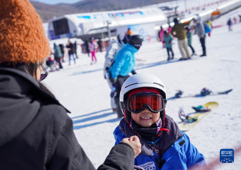 1月30日,小朋友在吉林市萬(wàn)科松花湖度假區滑雪。