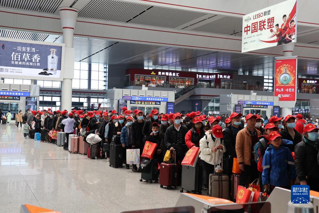 當日,D2879次務(wù)工專(zhuān)列從貴陽(yáng)北站發(fā)車(chē)。這是2023年貴陽(yáng)開(kāi)出的首趟高鐵務(wù)工專(zhuān)列,搭載600余名外出務(wù)工人員南下就業(yè)。據了解,該趟務(wù)工專(zhuān)列由貴州省黔南州、廣東省廣州市的人社部門(mén)根據務(wù)工人員返崗需求定制加開(kāi)。