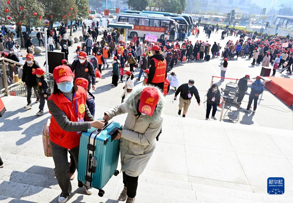 當日,2023年廣西柳州市首趟“點(diǎn)對點(diǎn)”送工服務(wù)專(zhuān)列D3755次列車(chē)從柳州火車(chē)站發(fā)車(chē),500多名來(lái)自柳州市各縣區的務(wù)工人員乘坐動(dòng)車(chē)前往廣東返崗復工。