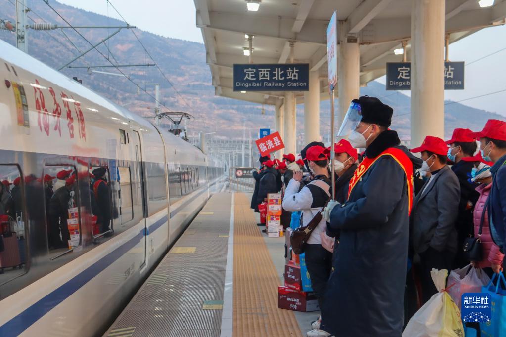 當日,500多名務(wù)工人員免費搭乘G1904次列車(chē)從定西北站出發(fā),前往福建省福州市返崗務(wù)工,這是甘肅省今年開(kāi)行的首趟返崗務(wù)工高鐵專(zhuān)列。