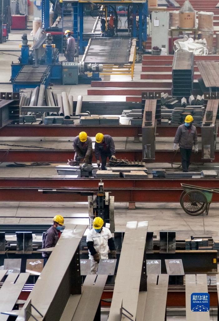 1月30日,在山西運城一家建筑公司的輕鋼車(chē)間,工人在進(jìn)行焊接拼裝作業(yè)。