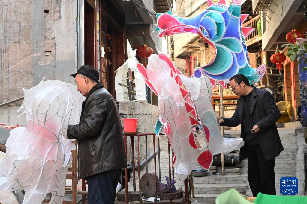 從正月初六開(kāi)始,貴州省黔東南苗族侗族自治州臺江縣的民間藝人紛紛用紙、竹木條等材料趕制各式各樣的花燈和龍燈,迎接元宵節的到來(lái)。
