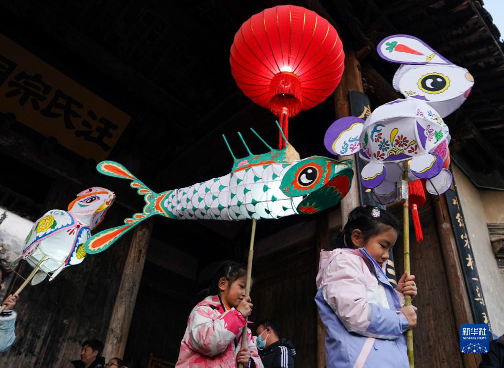 兔年新春,在安徽省黃山市黟縣宏村,當地舉行的花燈研習班邀請游客共同制作兔子形狀花燈。傍晚時(shí)分,五顏六色的“兔燈”在古村中點(diǎn)亮,游客在“鬧花燈”中體驗徽州年俗。