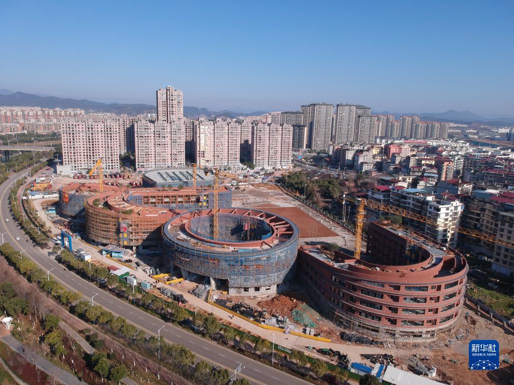 1月30日拍攝的福建省南平市第三實(shí)驗學(xué)校建設項目施工現場(chǎng)(無(wú)人機照片)。