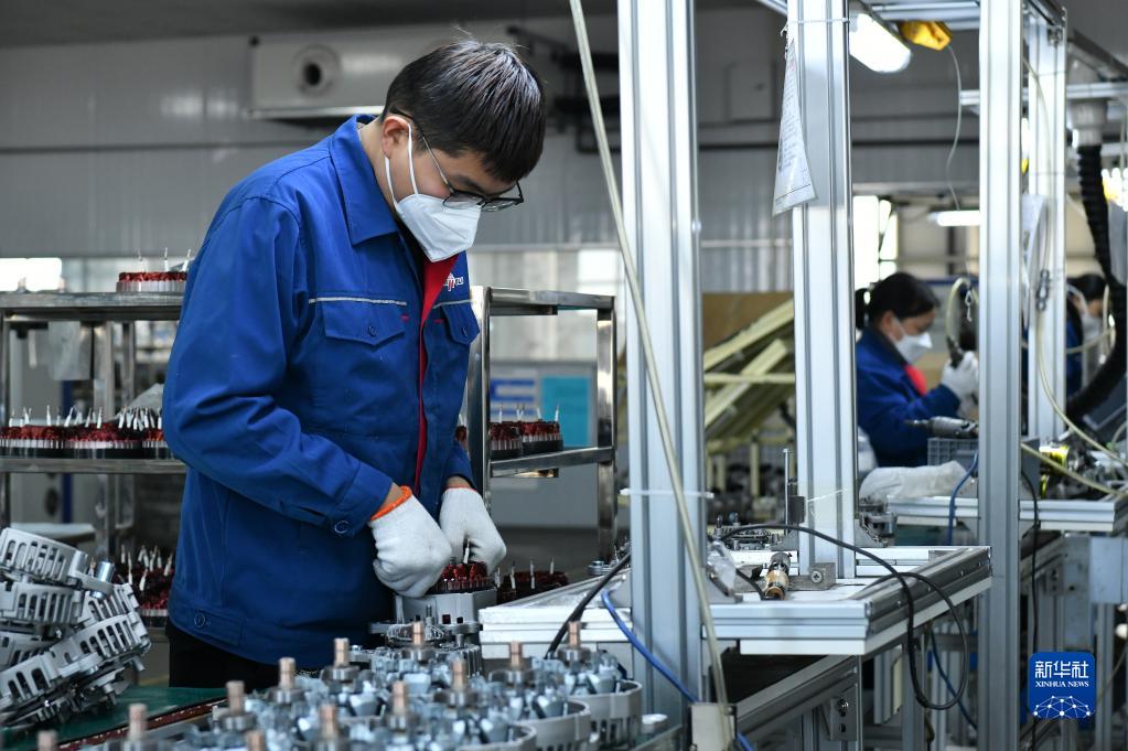 1月30日,工人在河間市一家再制造企業(yè)車(chē)間生產(chǎn)線(xiàn)上組裝汽車(chē)發(fā)電機。