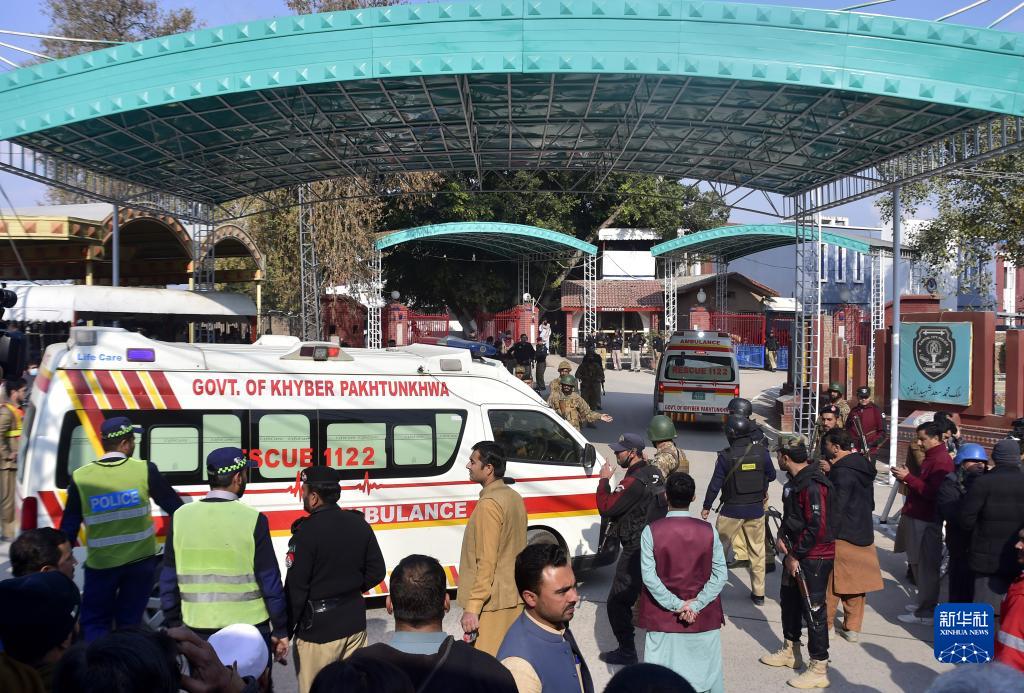 1月30日,在巴基斯坦西北部開(kāi)伯爾-普什圖省首府白沙瓦市,救護車(chē)抵達爆炸襲擊事件現場(chǎng)。
