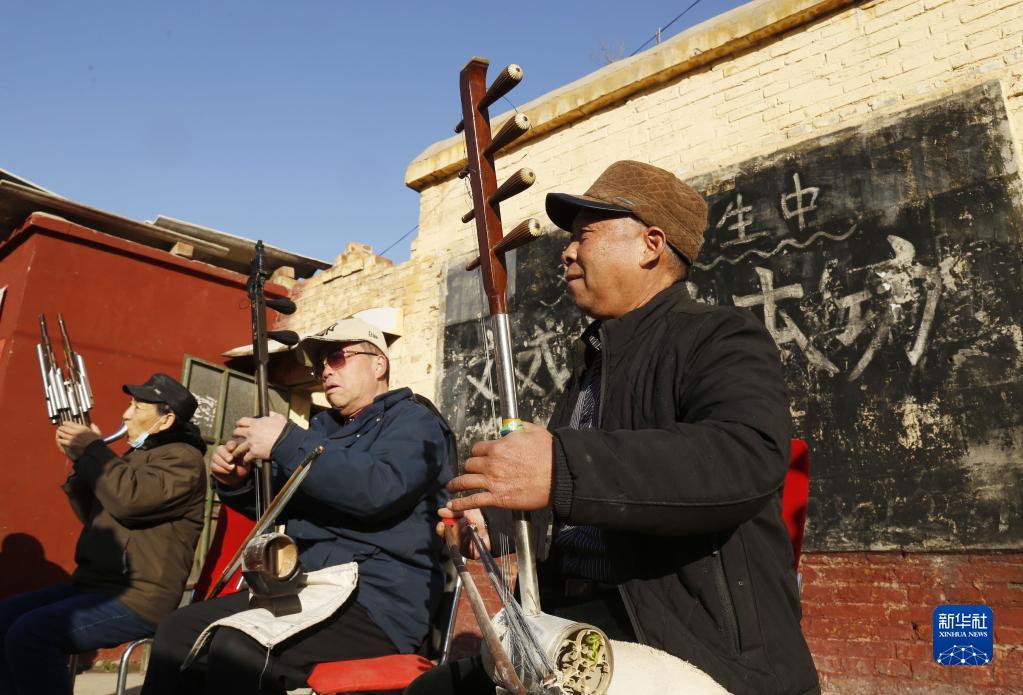 1月30日,在邢臺市襄都區北大街街道辦事處新興東社區,樂(lè )師在演奏四股弦。