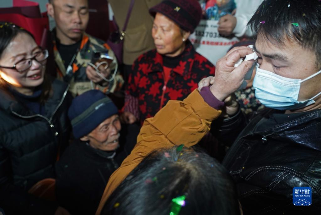 在靖安縣黃龍村家中,母親余陳妹為兒子擦拭淚水(1月30日攝)。