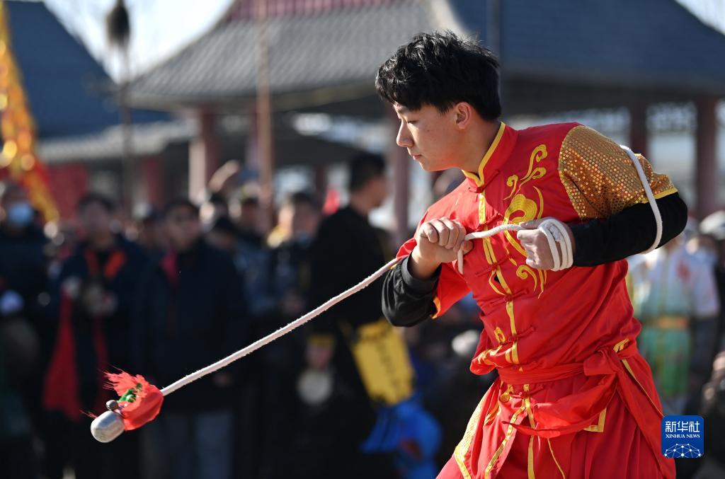 1月31日,漢溝英武少林會(huì )在表演武術(shù)。