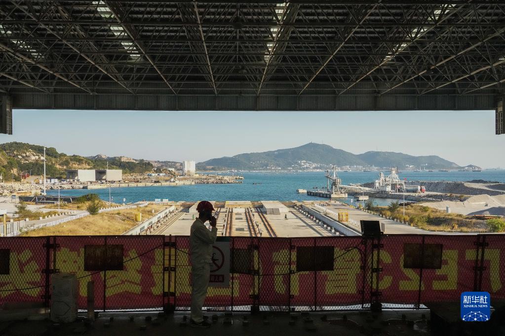在中交四航局珠海牛頭島沉管智慧工廠(chǎng),施工人員進(jìn)行深中通道海底隧道最后一個(gè)管節(非標準管節、含最終接頭)澆筑工作(1月30日攝)。