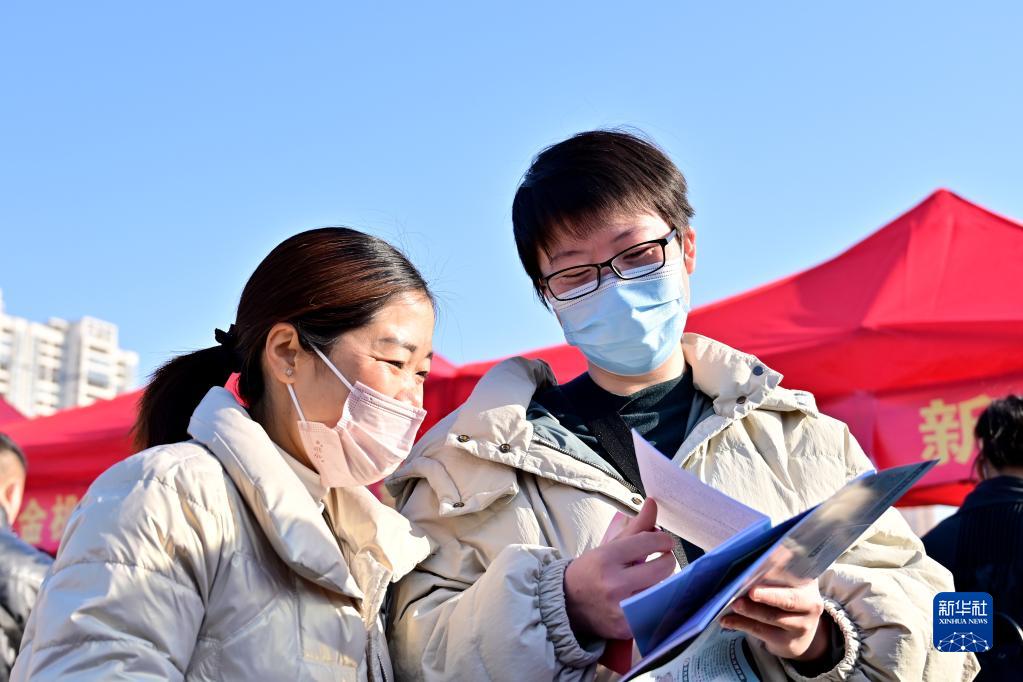 1月31日,求職者在湖南省婁底市雙峰縣國藩廣場(chǎng)舉行的招聘會(huì )上了解崗位信息。