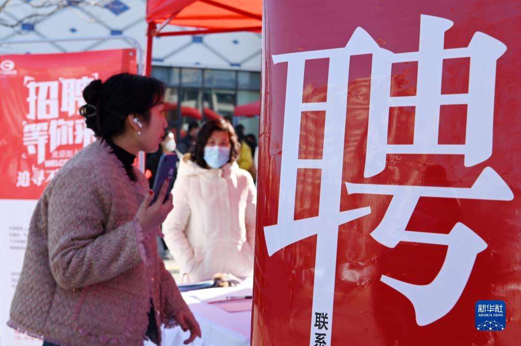 1月30日,在河南省焦作市2023年春風(fēng)行動(dòng)暨就業(yè)援助月新春招聘會(huì )上,求職者在招聘攤位前了解用工信息。