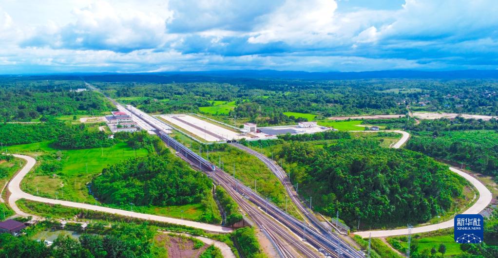 “瀾滄號”動(dòng)車(chē)組列車(chē)運行在中老鐵路老撾段線(xiàn)路上(1月2日攝)。