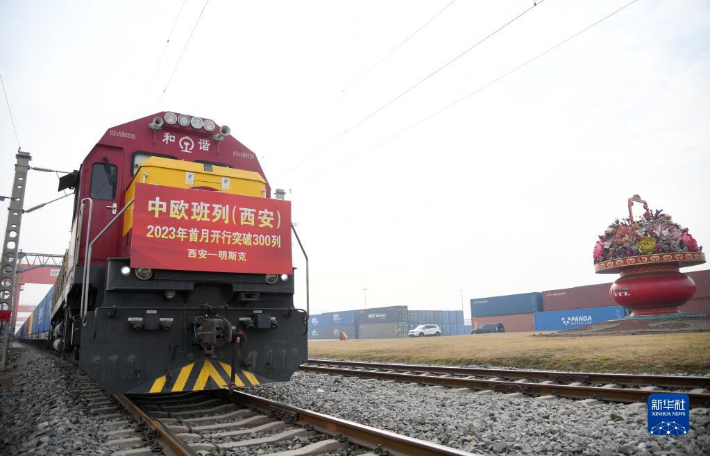 當日,滿(mǎn)載日用百貨的X8151次中歐班列從西安國際港站駛出,開(kāi)往白俄羅斯首都明斯克。2023年1月,陜西中歐班列開(kāi)行突破300列,達到346列,創(chuàng )歷史同期最好成績(jì),取得新年開(kāi)門(mén)紅。