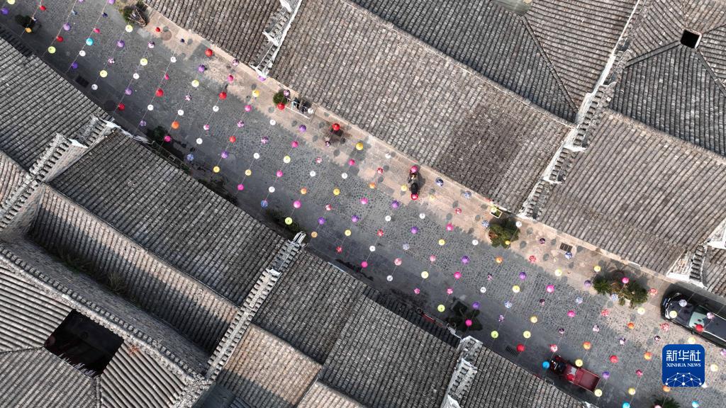 這是2月1日拍攝的舊州古鎮一角(無(wú)人機照片)。