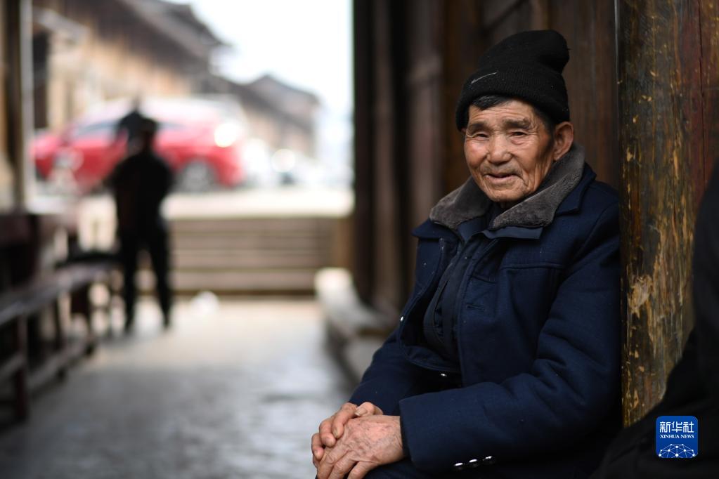 2月1日,老人在舊州古鎮街邊休息。