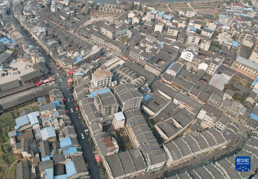 這是2月1日拍攝的舊州古鎮一角(無(wú)人機照片)。