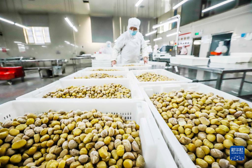 2月1日,工人在位于河北省遵化市堡子店鎮一食品集團車(chē)間加工出口栗仁。