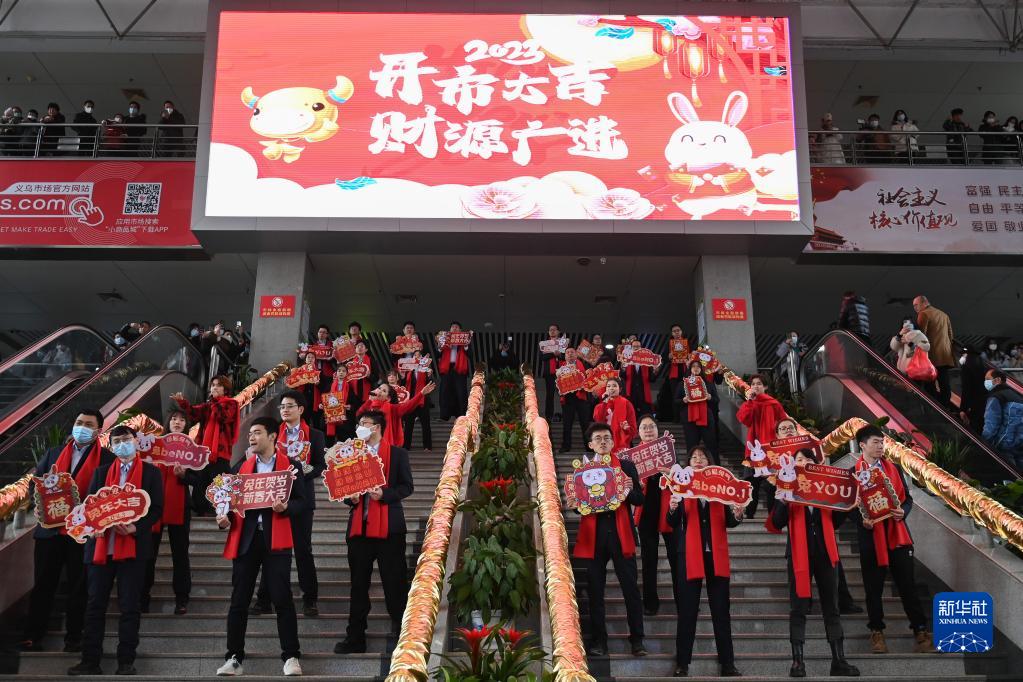 當日,全球最大的小商品批發(fā)市場(chǎng)——義烏國際商貿城迎來(lái)兔年開(kāi)市。市場(chǎng)商戶(hù)準備就緒,迎接全球客商的到來(lái)。