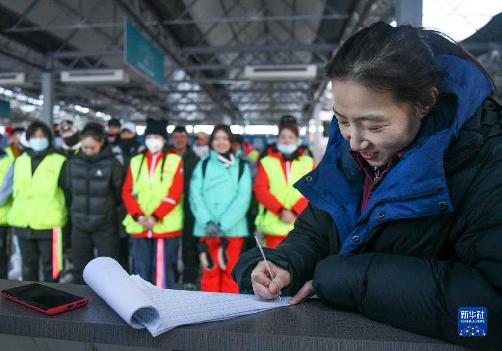 在新疆白云國際滑雪場(chǎng),許秀娟在當天上班前給教練員點(diǎn)名(1月26日攝)。