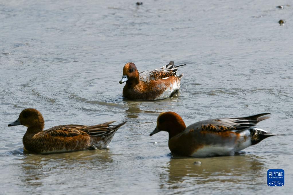 一群赤頸鴨在福田紅樹(shù)林濕地里棲息(2022年11月11日攝)。