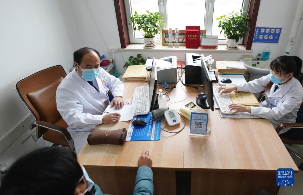 2月2日,王保欣(左)在衛生院門(mén)診出診。