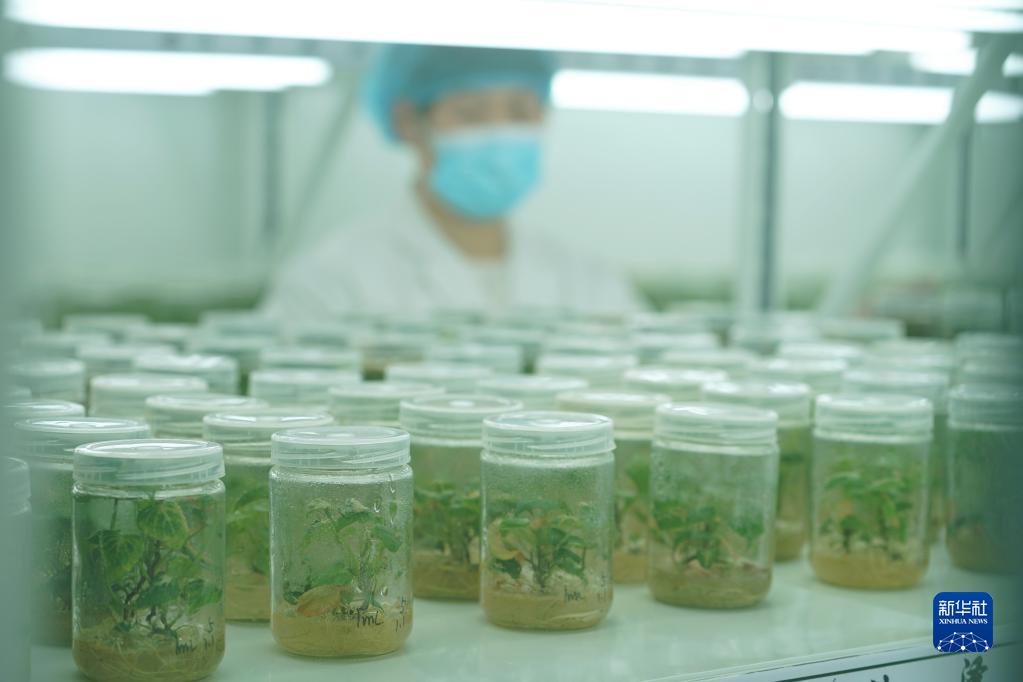 2月2日,技術(shù)人員在進(jìn)行紅薯育苗。
