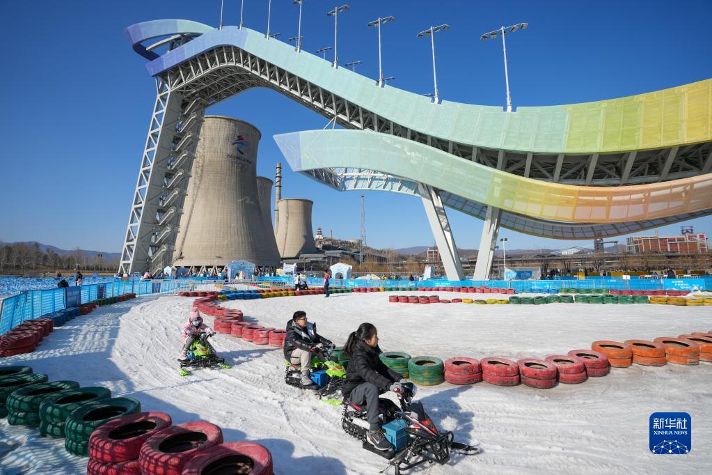 游客在首鋼滑雪大跳臺下的“首鋼園冰雪匯”體驗雪上游樂(lè )項目(1月31日攝)。