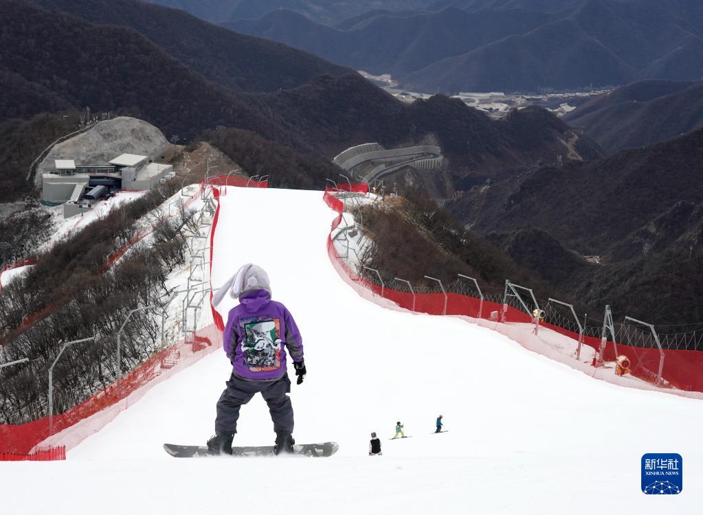 游客在北京延慶區國家高山滑雪中心滑雪(2月2日攝)。