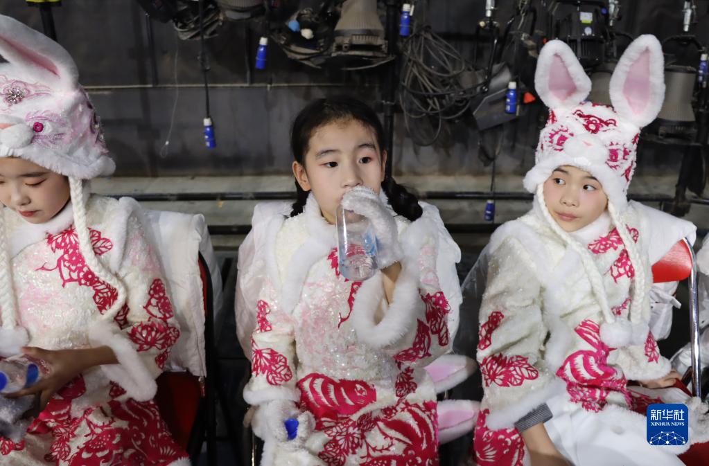 馬蘭花兒童聲合唱團團員在春晚彩排的備場(chǎng)室休息(1月18日攝)。