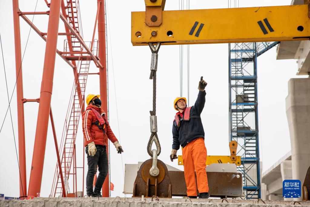 工人們在杭甬高速復線(xiàn)一期工程現場(chǎng)工作(2月1日攝)。