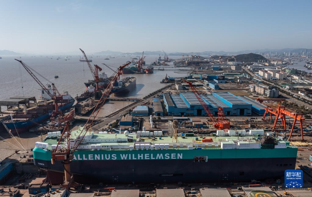 1月31日拍攝的萬(wàn)邦船舶重工(舟山)有限公司的船塢忙碌的景象(無(wú)人機照片)。春節期間,位于舟山市普陀區小干島的萬(wàn)邦船舶重工(舟山)有限公司的沿海岸線(xiàn)碼頭上排滿(mǎn)等待修理的船舶,一臺臺高空作業(yè)平臺車(chē)環(huán)繞著(zhù)萬(wàn)噸巨輪加緊運轉作業(yè),一季度訂單已經(jīng)全部排滿(mǎn)了。