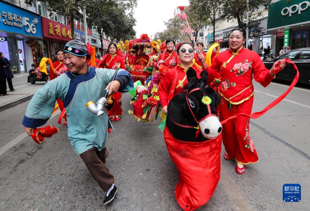 2月3日,安徽省蚌埠市五河縣城關(guān)鎮的民間藝人在表演。